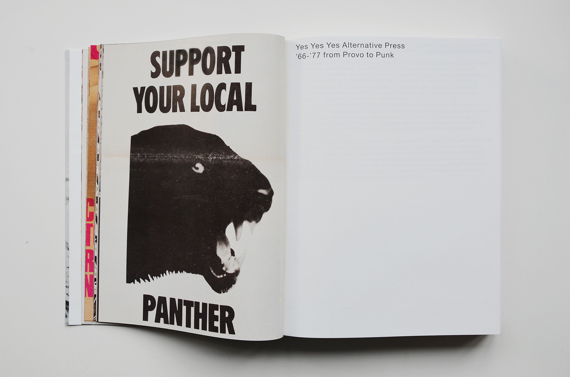 YES YES YES è un saggio visuale, un libro di immagini che esamina il ruolo della stampa alternativa, underground e controculturale in un periodo fiorente: 1966-1977. Editori, autori, praticanti radicali di quella scena, intervistati in questo libro, ripensano quelle azioni e pubblicazioni che toccavano i temi dell’ urgenza sociale del cambiamento. YYY tratta soprattutto la cultura visiva di riviste povere stampate in off-set, la loro grafica stupefacente e la loro estetica liberata in integrazione con il sistema di attivismi ed interventi politici. In questo modo le pagine dei giornali trattano i fatti e le notizie, ma anche supportano lo stile sovversivo e quel clima fervente che formò una rete sociale di stampatori, le autonomie creative e i sindacati per la distribuzione. In questa innovazione sistemica, la democratizzazione di stampa stimolava la sperimentazione del design grafico da un lato e la crescita della pratica editoriale in una cultura allargata alla comunità dall’altro. Le riviste sono state catalogate secondo dei temi e, anche se collocate in una geografia incompleta, testimoniano uno scenario culturale internazionale tra Europa e America. YYY è una collezione di innumerevoli documenti sui diritti civili e movimenti di liberazione, che ha lo scopo non solo di conservare e riportare a memoria, ma anche di sfogliare le pagine viventi diffondendo contenuti radicali e layout creativi.