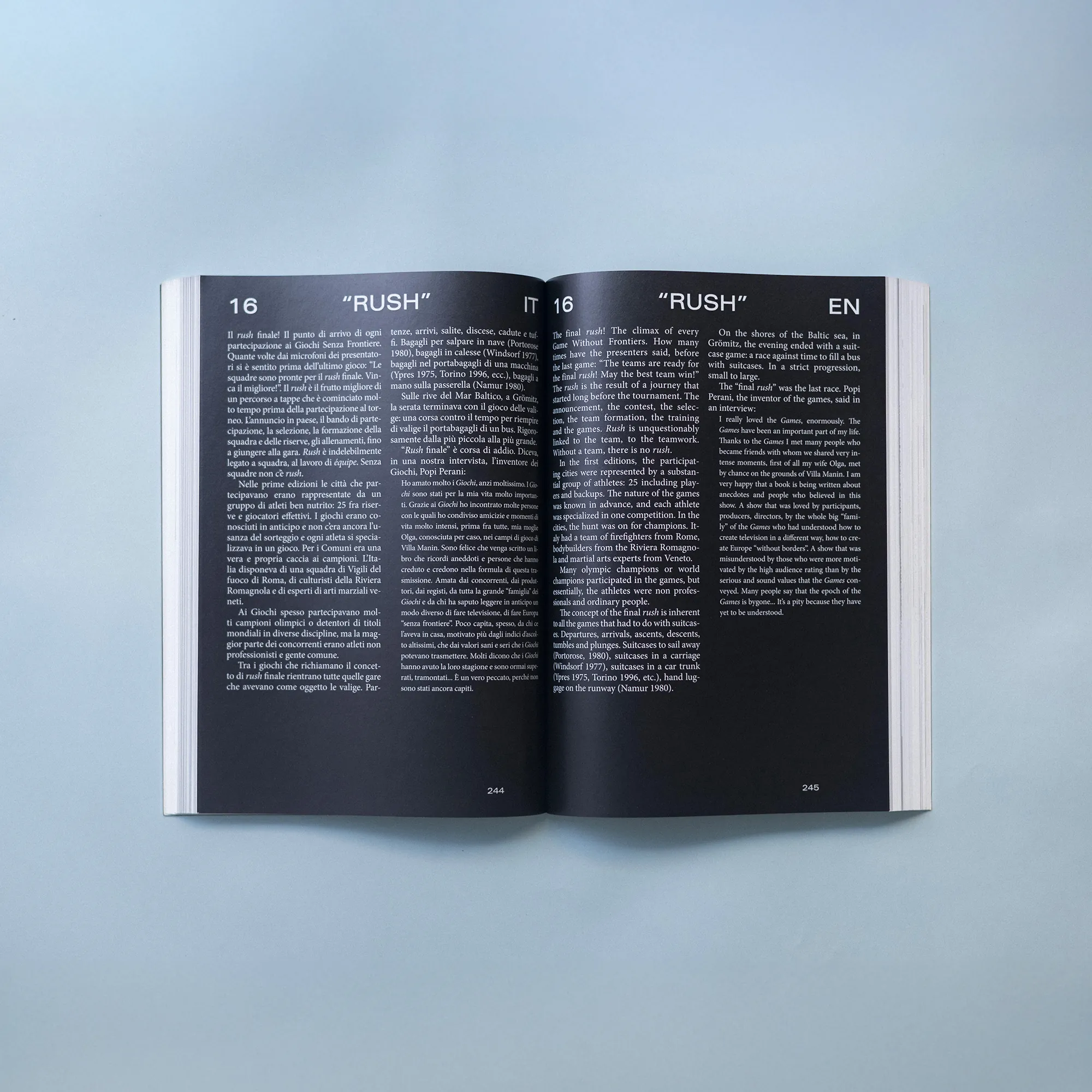 "Sportification" is a stunt-book, a performative publication composed of Euro-texts, a living archive of 400 artistic performances and 250 playgrounds staged from 1965 to 1999 in various European cities during the heyday of the famous TV game show "Jeux Sans Frontières." With a playful artistic approach, the authors tested many playing fields. The three sections of investigation, Eurovision, Performativity, and Playgrounds, organize the contents and contributions of a long-term research. This unique comparative system between art and play establishes a new inter-media definition of European performance art, where artistic game actions, performance, and happenings interact with the subversive world of television.