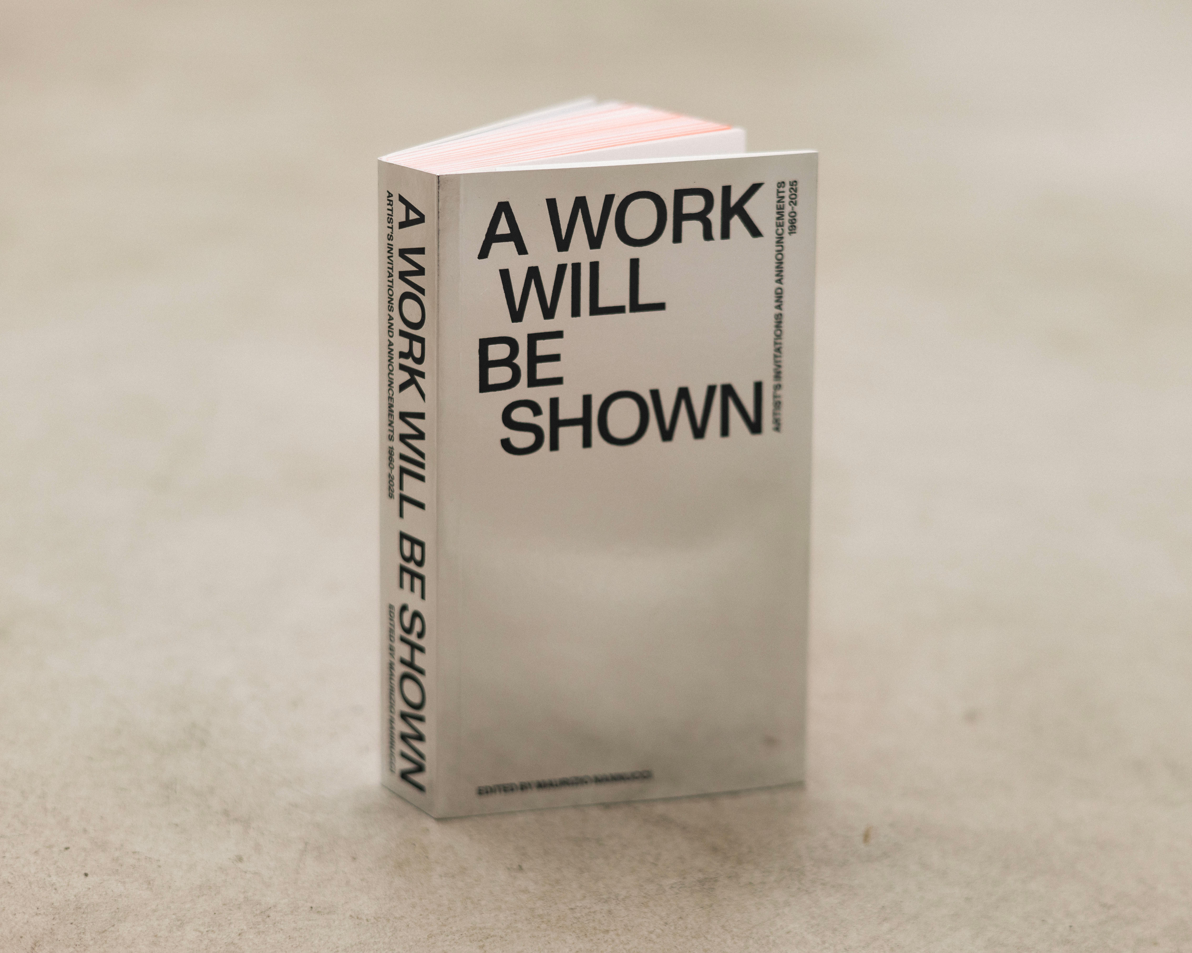 A Work Will Be Shown presents a selection of artist exhibition announcements and invitations cards that the artist Maurizio Nannucci began collecting in the 1960s. Since that decade of radical avant-garde art movements Nannucci has kept and enlarged continuously his choice of these items parallel to his art practice. Taken together this book is not just a record of exhibition announcements by the artist’s friends and colleagues, it is also an exploration of unleashed creativity, of courage and commitment that contemporary artists bring to their work. The conception of the book spread out a cosmogony with its multifaceted imagery, texts, photography, typography, colours and different papers that artists are applying as a free means of information which is sent internationally by postal mail. A Work Will Be Shown edited by Maurizio Nannucci, contains essays by Gabriele Detterer and Emanuele De Donno. The large spectrum of exhibition announcement cards is organized in twelve categories which are drawing attention to different aspects of creative expres- sion, semiotics and aesthetics of this medium to transmit artists’ original ideas and projects: Welcome to the Opening, Each Day or by Appointment, Show A Performance, The Artist Will Show, Please Complete Clearly, Work Visible in a Given Location, Statement, Unico Concerto, Invitation & Nouvelles, The Act of Inviting or Announcing, Post-Card, Words Drawings and Diagrams, Framework, You Can Imagine the Opposite. This structure of the book as a kind of meta-text complements the personal narrative that underlies Nannucci’s investigation and imprint of his choice of exhibition announcement cards. As a whole the book’s two-dimensional approach results in an unusual insight into the history of contemporary art since the second half of the 20th century until today.