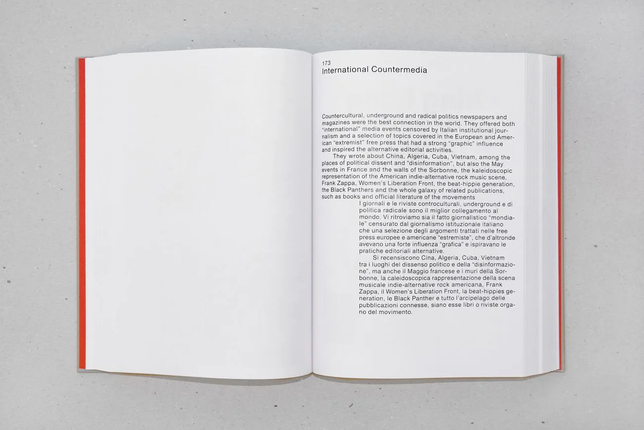 Yes Yes Yes Revolutionary Press in Italy investigates the Italian scene of revolutionary press "organs" in the form of newspapers, magazines, cyclostyled publications, bulletins, pamphlets, some daily newspapers others periodicals, often irregular, others sporadic, many single issues repeatedly awaiting authorization... The feverish typographic activity is linked to the intense political-ideological, antagonistic, and counter-cultural struggles of a period striving for civil spaces, areas of freedom, and social creativity. This volume critically surveys and selects more than 600 printed materials released between 1966 and 1977. This research is the natural continuation of the substantial publication, released in 2014 and edited by the same publishers: Yes Yes Yes, Alternative press, 66-77 from Provo to Punk, curated by Emanuele De Donno and Amedeo Martegani. That first volume examined the role of alternative, underground, and countercultural European and American press during a flourishing period: 1966-1977; this new edition focuses on the Italian scene, whose extensive strategy of "collusion" and fragmented regional geography have necessitated, for thematic analysis, a broadened view of alternative media, not only underground, independent, and countercultural, but also of counter-information, "aligned" publishing, ultra-radical political and ideological. The substantial core of publications listed in the prolific Italian network, which also extends to the provinces, has been gathered thanks to contributions from archives online, collectors, enthusiasts, publishers, and activists from all over Italy, constituting a submerged geography of Italian countercultural publishing but also of a resistant and reasoned collecting. These printed media document a search for radical culture, authors and co-authors, promoters/artists of free and alternative culture, distributed in boundary-pushing and experimental formats.